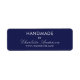 A label for your handmade products or art. Personalise and add your name and website address. Navy blue background, white text. You can change the background colour and the text colour to match your brand.