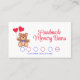 This stylish cute memory Bear handcraft business loyalty card is decorated with a teddy bear with 2 heart shape red balloons. Ideal for any small business such as handicrafts , craft making, memorial keepsakes and gifts and many others. Add your company loyalty scheme details for a stylish and modern loyalty card.