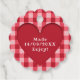 Gingham scollop design with raspberries. On the back there's a heart shape with message. All text is fully customisable. Can be used for many types of Raspberry goods. Ideal for professional business or for someone who just loves to prepare food for their family & friends. Also available in cherry, strawberry, blueberry and apricot.