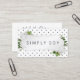 These simple business cards are for handmade, hand poured scented candles and soy wax melts. The design is simple but pretty with a fancy silver frame and white roses and navy blue dots in the background.