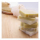 Green and white, handmade, all natural soap on a wooden background.