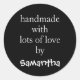 Handmade With Lots of Love by Name White Black Classic Round Sticker