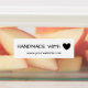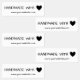 Simple handmade with love stickers, with a black heart replacing the word love. The font is a charming hand-written font in black against a white background. A minimalist and practical handmade goods sticker for your small business.