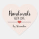 Modern "handmade with love" sticker with a black font on a blush pink background embellished by a cute red heart. Customise text.
