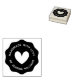 Rubber stamp featuring the text "Handmade with love" and your name or other custom text in a modern sans serif font surrounded by a wavy border. At the centre is a cute heart.