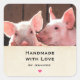 Handmade with Love Cute Pink Piglets Animal Photo Square Sticker