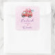 Handmade with Love Cute Red Truck Watercolor Square Sticker