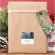 Handmade with Love product stickers with a photo of a regal deer with antlers standing in a shadowy forest among sunlit trees. Snow falling all around.