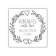 Handmade with love rubber stamp, personalised with your name or business name. This cute design has a doodle drawn wreath with hearts and foliage. It is lettered with skinny font typography and casual handwritten script. A sweet country rustic style design for artisans of handmade gifts and retail products.