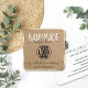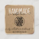 This simple, rustic, and cute business card is perfect for the home crafter, Etsy shop owner, or art fair creative. It features handwritten script font in black and white that says, "Handmade with love by (store name)," on top of a minimal and chic faux printed gold foil border and brown kraft paper background with a place for your logo. It's modern, elegant, sweet, and unique; the perfect design for your customers.