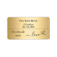 A faux gold looking background, black text. Personalise and add your name and return address. With the text: Handmade with love, by + a small heart.