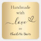 A faux gold looking background, black text. Personalise and add your name. With the text: Handmade with love, by + a small heart.
