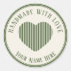 handmade with love green christmas stripes classic round sticker