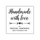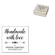 Handmade with love rubber stamp with a little black heart and two arrows. Handmade with love in calligraphy script. Customise with your name and website.