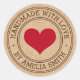 Stickers with a red heart and text the "Handmade with love" and custom name on a printed Kraft paper look background. Use as envelope seals, stickers for gifts and favours, product packaging etc