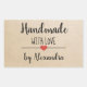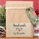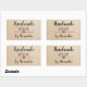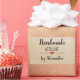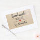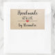 Modern "handmade with love" sticker with a black font on a cardboard background embellished by a cute red heart. Customise text.