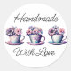 Graphics of antique teacup full of pretty vintage purple and pink flower teapot. Pink, purple and blue. ai art generativecontent