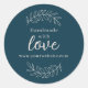 Handmade with love", petrol blue stickers with customisable sticker with website. Ideal for small business product packaging. Background colour customisable. Original art from artists own illustrations. Matching items available. Please contact me for further customisation and special requests. © Zoe Chapman Design