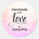 Handmade with Love Pink Ombre Heart Custom Name Classic Round Sticker
