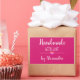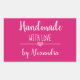 Handmade with love pink script name rectangular sticker