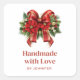 Handmade with Love Red and Gold Christmas Bow Square Sticker