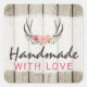 Handmade With Love Rustic Floral Antlers on Wood Square Sticker