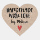 A personalised rustic "handmade with love" heart shaped sticker on a kraft coloured background. Make it yours by adding your own name. A pretty finishing touch for all of your handmade gifts. Designed for you by Blackberry Boulevard.