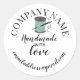 Add a thoughtful finishing touch to your products with this charming “Handmade with Love” sticker, featuring a cotton reel illustration at the centre. Designed by The Arty Apples, this circular sticker includes space for your company name curved above and your email address curved below, making it perfect for branding your handmade creations.