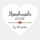 Modern "handmade with love" sticker with a black font on a white background embellished by a cute red heart. Customise text.