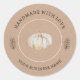 Rustic round sticker featuring a hand-painted white pumpkin on a kraft paper background. Perfect for small businesses, handmade product packaging, or seasonal gifts. The text "Handmade With Love" adds a personal touch, while customisable fields allow you to add your business name. Ideal for autumn, Thanksgiving, and craft branding.