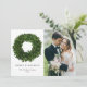Handpainted Boxwood Wreath Merry and Married Photo Holiday Card