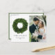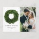 Merry and Married | Send your holiday wishes to friends and family with this customisable holiday postcard. This photo Christmas postcard features handpainted boxwood wreath. Personalise by adding your details. This wedding Christmas postcard is available in other colours and cardstock. Matching items are available.