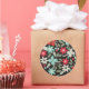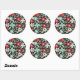 Handpainted Christmas Poinsettia Red White Aqua Classic Round Sticker
