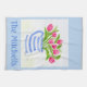 Handpainted Watercolor Tulips, Blue Stripe Pitcher Tea Towel