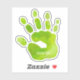 Artisan Watercolor Handprint in green on white background with custom NAME in white. Easy to personalise text, text colour. Great for ANY Child, Kids Stocking, Family logo, Waterbottle, Party Theme, Event Favours, at Holidays or all year long. Colourful, Timeless, Fun. Mix and match entire Handprints / Holiday Collections by TMCdesigns.