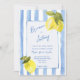 Handrawn blue stripes lemons Italian wedding Invitation
