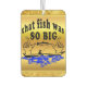 Two hands apart showing how big the fish was. With a fish in the centre and a boat below with water. To brag and show off the fish you never got.