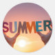 Hands are holding up colourful letters that spell "SUMMER" against a vibrant sunset backdrop