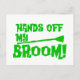 Great for anyone who is a bit witchy, Hands Off My Broom green text and green broom design T-shirts, mugs, buttons, magnets, bags, mousepads, keepsakes, cards, stickers, key chains, and many other items for Halloween or any day if there's a bit of a witch in you!
