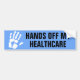 Hands Off My Healthcare Design Bumper Sticker with customisable text and background colour.