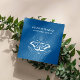 Elegant business cards for psychotherapy studio, energy healing, life guidance, yoga or massage studios, massage therapy, meditation teacher, natural health counsellor, spas or wellness professionals feature a white illustration of a two opened hands creating energy with a spiritual moth a third eye moon and stars in intense solid blue sky colour background.