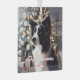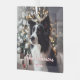 A border collie looks like he is expecting something good at Christmas time.