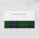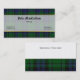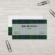Stylish plaid business card done in the traditional blue and green MacCallum tartan pattern. The front of the card has a gold tone edged semi transparent white band, across the middle of the card, with custom black text. The back of the card is done in white, with a strip of plaid at the bottom, and black text on the white portion. Personalise all the text to suit your needs. Handsome and professional looking business card.