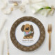 Adorable handsome puppy paper plates feature a brown paw print border with our cute handsome puppy inside wearing a blue bandanna. Text can be changed to suit your needs. Adjust font sizes and colours using the customisation tool.