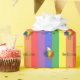 An illustrated rooster in all his glory with his tail feathers ready for a De Colores rainbow shout out.