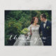 Place two photos on your wedding thank you cards, one on the front and a second photo on the back. Send out your wedding thank you message as newly weds to your friends and family using this beautifully, simple thank you wedding photo postcard with the words "thank you" written in a white handwriting script text overlay. Wedding Thank You Postcards with Your Photo. Design by Elke Clarke© . Replace the sample photo with your own. Add your personal thank you message on the back or leave blank and hand write your message in person. Other colours available.