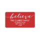 Simply Believe White Script Overlay on Red Background Holiday Greeting Card Address Labels. Elke Clarke© for MonogramGallery. Other colours available