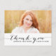 Trendy Handwritten Black Script Photo Graduation Thank You Postcard. Design by Elke Clarke © Visit our shop www.zazzle.com/monogramgallery* for more colours and styles. Add your own photo and text. A simple chic black typography overlay on a white background with the words "Thank You". Replace sample photo with your own.