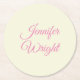 Handwriting Name Classical Plain Beige Pink Round Paper Coaster