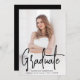 Modern graduation announcement featuring your vertical photo on the front with "Graduate" displayed in a handwritten black script overlay. Personalise the front of the photo graduation announcement with the graduate's name, school name, and graduation year. The simple graduation announcement reverses to display an additional photo with space provided to include the graduate's future plans, graduation details, etc. The 2 photo graduation announcement is perfect for both high school and college graduations!